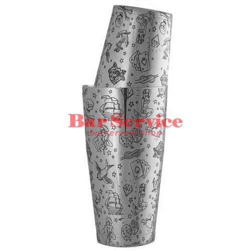 Супер стильный "татуированный" шейкер объёмом 850 мл. Тату-мотивы, выполненные глубкой гравировкой по всему шейкеру, бросаются в глаза – этот барный инвентарь не останется незамеченным.